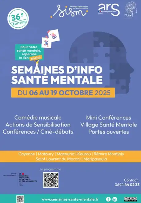 À cette occasion, le Conseil Intercommunal de la Santé Mentale (CISM) de la CACL, coorganise en partenariat avec l’ARS et la ville de Matoury, la 1re édition du Village Santé Mentale, les 17 et 18 octobre 2025 à la Maison des Arts Martiaux de la ville de Matoury.